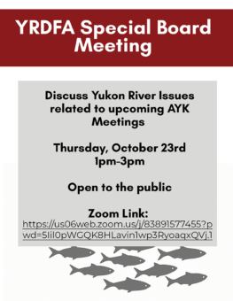 There will be a special YRDFA Special Meeting to discuss AYK related issues for upcoming meetings Thursday, October 23rd from