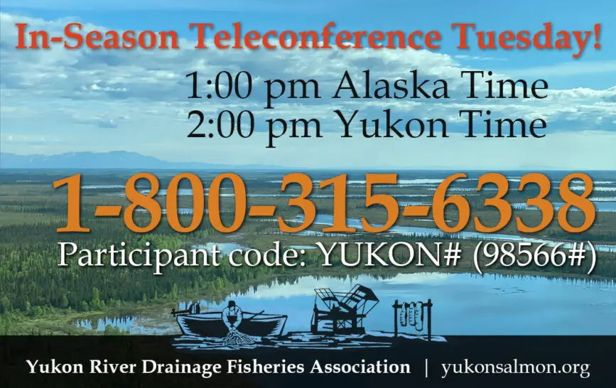 Reminder that our In-season Teleconference is today at 1:00 PM Alaska Time/2:00 PM Yukon Time. Teleconference Tuesday! We will have Rachel Baker with ADF&G on the call to go over the 2020 & 2021 Fishery Disaster Funding application process! Please share with your family and friends to jump on the call to get more information